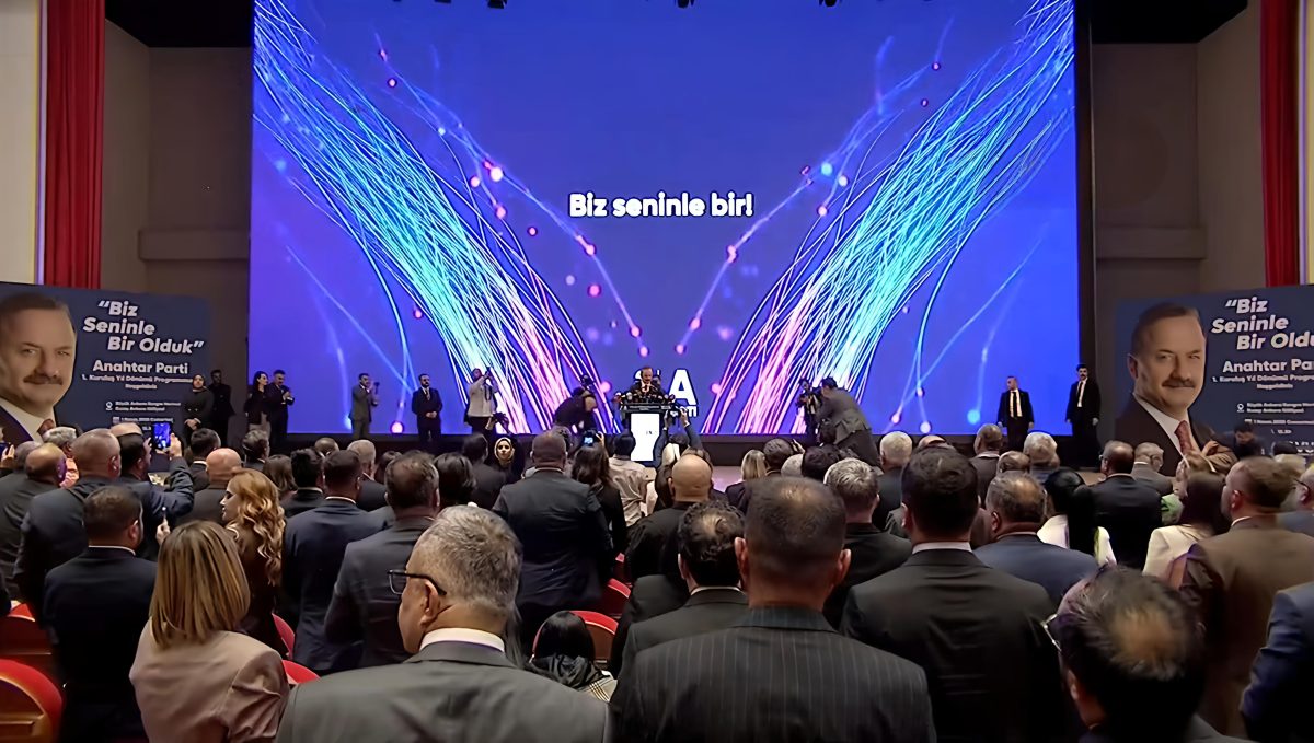 Anahtar Parti Genel Başkanı Yavuz Ağıralioğlu, salonda bulunan partilileri “2024’te Türk milleti için çıktığımız mukaddes yolculuğun 1. senesi için Ankara’da Kuzey Ankara Kongre Merkezi’nde katettiğimiz mesafeyi, milletimiz için yürüdüğümüz yolları, çektiğimiz zahmeti, milletimiz için bir umut meşalesine döndürdüğümüz bu güzel günümüze hoş geldiniz. Şeref verdiniz” sözleriyle karşıladı.