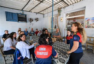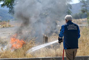 İzmir Büyükşehir Belediyesi İtfaiye Dairesi Başkanlığı Eğitim Şube Müdürlüğü de muhtarlar ile yurttaşların yangınlar, afetler karşısında duyarlılığını artırmak için eğitimlerini sürdürüyor.
