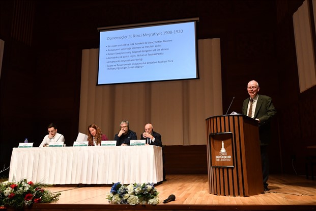 Prof. Dr. Eyüp Özveren de yaptığı konuşmada, “Avrupa Birliği kapısı ve Meclis Hükümeti Sistemine dönüş kapısı bu yıl itibariyle kapanmış görünebilir. Önümüzdeki dönemde bizi bekleyen temel tehlike, ABD-Asya rekabetinde akıntılara kapılmak Ortadoğululaşma tehlikesi. Bunun karşısında bazı artılarımız ve birikmiş güçlerimiz de var. Tarihsel deneyim zenginliğimiz. Birlikte yaşama, cumhuriyet ve katılımcı demokrasiyi yaşatma irademiz. Büyükşehir Belediyeciliğinde alınan yol, İzmir modeli arayışları, bunun son 5 yılda Türkiye’de gündeme gelen üçüncü yerel yönetimler dalgası çerçevesinde yeni boyutlarda zenginleştirilmesi… İzmir örneğinden konuşuyorum. Döngüsel kültür olsun, ekoloji olsun, tarım kesiminde yeni açılımlar… Bunlar çok değerli noktalar. İzmir, Akdeniz bağlamında bir direnç noktasında bulunmanın yararını da görebilir. Türkiye’nin Akdeniz’e açılan kapısı aynı zamanda Anadolu’nun Akdeniz’e attığı demir olan İzmir bu imkana sahip” dedi.