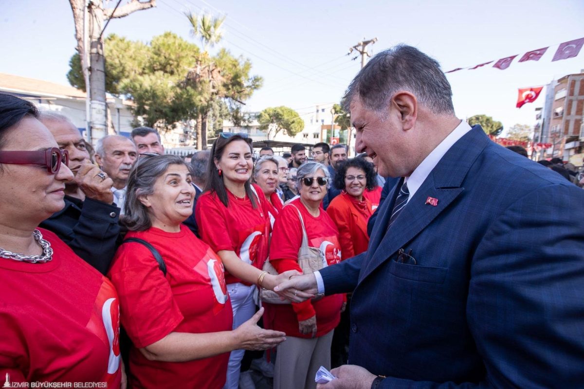 Menemen’de CHP İzmir İl Başkanlığı tarafından organize edilen kutlamalara katılan Başkan Dr. Cemil Tugay, ülke gündeminde yaşanan kadın ve çocuk cinayetleri, yoksulluk, terör gibi gündemlere tepki gösterdi. Başkan Tugay, “Cumhuriyet yolsuzlukla, hırsızlıkla, hainlikle bir arada olamaz. Cumhuriyet, şeriatla, tarikatla, cemaatle bir arada olamaz. Cumhuriyet vatan hainleriyle, terörle bir arada olamaz. Cumhuriyet ancak bu güzel milletin eşit olduğu bir dünyada bu halkla birlikte olur” dedi.