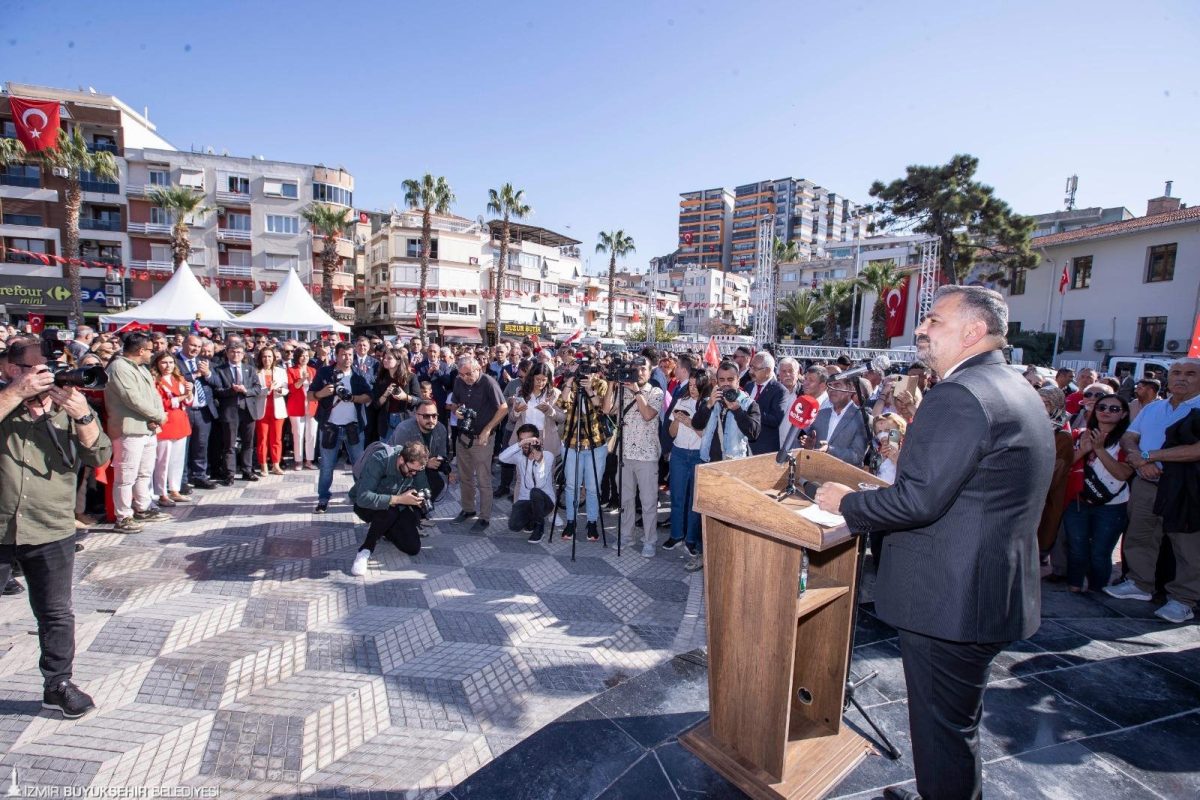 Ulu Önder Mustafa Kemal Atatürk ve silah arkadaşlarının verdiği kurtuluş ve Cumhuriyet mücadelesi hakkında konuşan CHP İzmir İl Başkanı Şenol Aslanoğlu, “Cumhuriyet ve Atatürk devrimleri olmasaydı, bugün çağdaş yaşamdan fersah fersah uzaktaydık. Bugün kadın arkadaşlarımız ile bu meydanda yan yana haykırabiliyorsak, Cumhuriyetin sayesinde. Laiklik olmasaydı, şeriat özentileriyle, tarikatlarla, Cumhuriyet düşmanlarıyla baş etmek imkânsız olurdu. Cumhuriyetin Asteğmeni Mustafa Fehmi Kubilay’ı şehit eden bağnazların o gün yolu kesilmeseydi, vatan hainlerine gereken cevap verilmeseydi, hepimiz özgürlükten mahrum kalmıştık” ifadelerini kullandı.