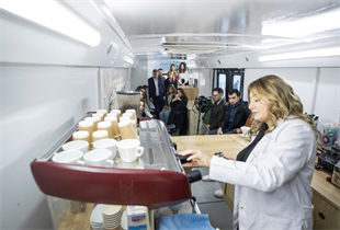 Başkan Tugay, İzmir Büyükşehir Belediyesi’nin gençlere mesleki beceri kazandırmak için devreye aldığı Mobil Barista Otobüsü’nde kahve yapımını öğrenen gençleri izledikten sonra yine Büyükşehir tarafından kurulan Çiğli Çamaşır Yıkama Merkezi’ne geçerek ücretsiz olarak yıkama hizmeti alan üniversiteli gençlerle sohbet etti.