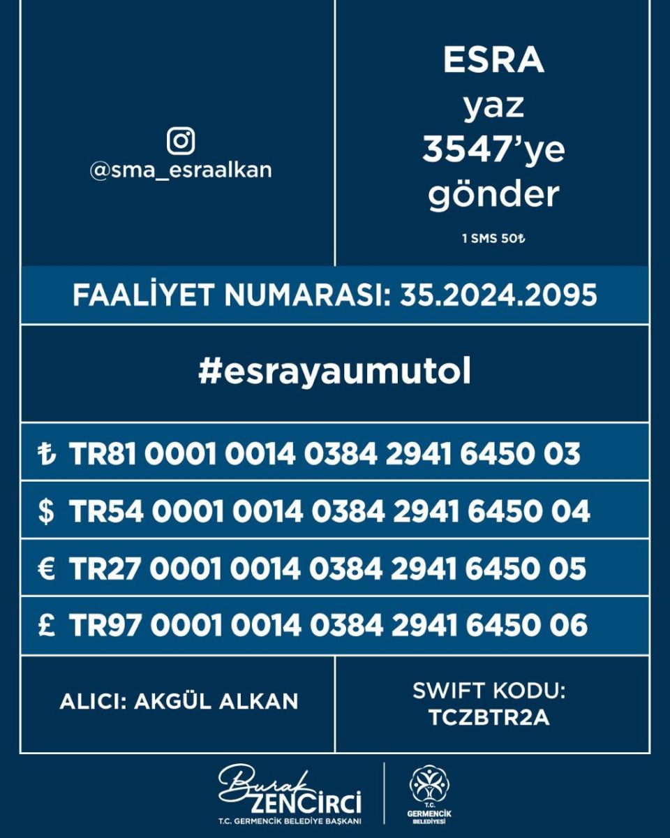 Başkan Zencirci, “Esra kızımız üstün zekâsı, enerjisi ve neşesiyle günümüzü güzelleştirdi. Biz de onun önündeki günleri güzelleştirmek, sağlığına kavuşup ülkemize faydalı işler yapması için elimizden geleni yapacağız. İlacına kavuşması için destekleriniz çok önemli. Bağış, katkı ve desteğinizle kısa sürede ilaç bedelinin toplanacağına inanıyorum. Esra’ya nefes olalım” ifadelerini kullandı.