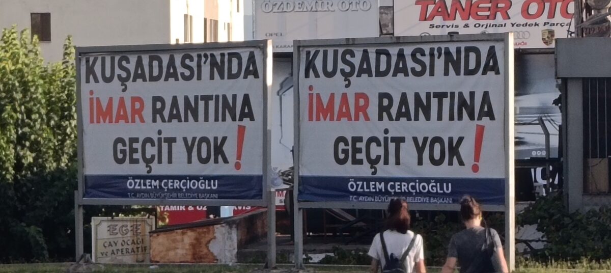 Öte yanda “Aydın’da ranta geçit yok” afişleri…