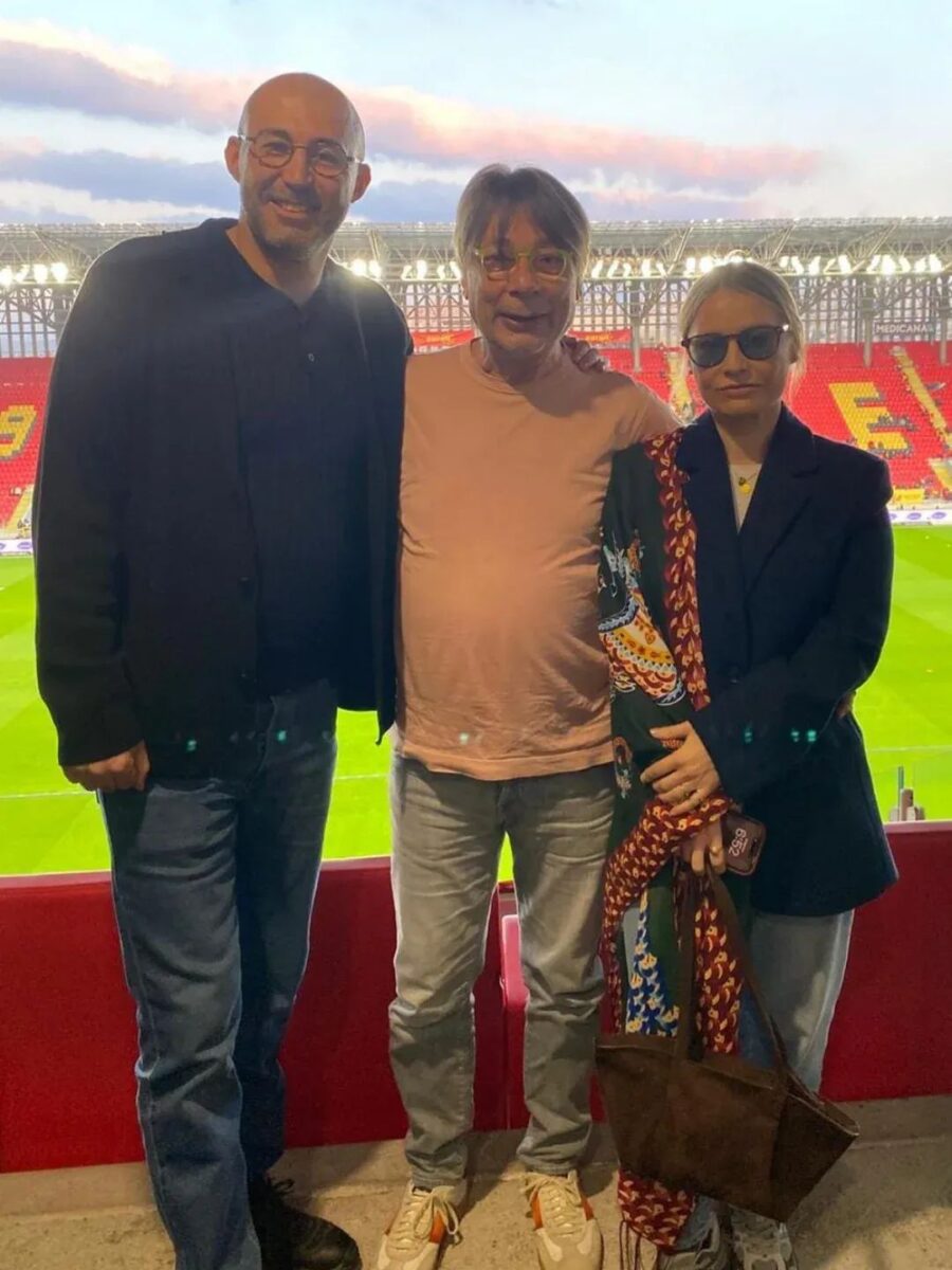 Eşiyle birlikte tribündeydi.