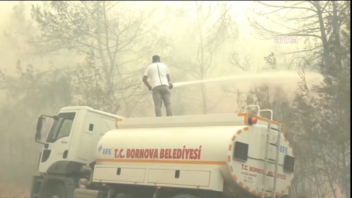 (İZMİR) – Bornova Belediye Başkanı Ömer Eşki, Bornova ve Buca’daki orman yangınına müdahale çalışmalarını yangın bölgesinden aktardı. Eşki, havanın aşırı sıcak olması, rüzgarın sık sık yön değiştirmesinin müdahaleyi zorlaştırdığını, ekiplerin yangına ulaşabilmek için yolları açmaya çalıştığını belirtti.