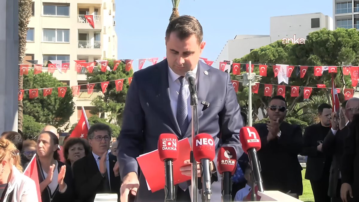 (İZMİR) – CHP İzmir İl Başkanlığı, Cumhuriyet’in 102. yılı dolayısıyla Konak Cumhuriyet Meydanı’nda çelenk töreni düzenledi. Törende konuşan CHP İzmir İl Başkanı Çağatay Güç, “Cumhuriyet, bize bırakılmış bir miras değil, her gün yeniden korumamız gereken bir emanettir. O emanet, geleceğimizin güvencesidir” dedi.