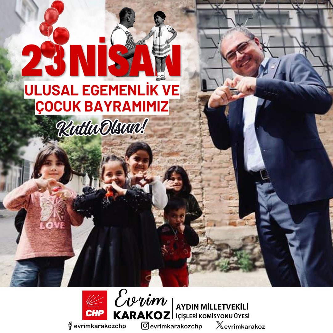 Cumhuriyet Halk Partisi Aydın Milletvekili Evrim Karakoz, 23 Nisan Ulusal Egemenlik ve Çocuk Bayramı mesajında “Geleceğimiz faydalana bırakacağımız en değerli miraslar, adil, özgür ve demokratik bir Türkiye’dir” diyerek millet iradesine gölge düşüren her türlü baskı ve adaletsizlikle mücadeleyi kararlılıkla sürdüreceklerini ifade etti.