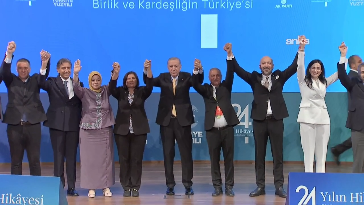 (ANKARA) – Cumhurbaşkanı ve AK Parti Genel Başkanı Recep Tayyip Erdoğan, partisinin 24’üncü kuruluş yıl dönümü dolayısıyla düzenlenen programda aralarında CHP’den istifa ederek AK Parti’ye katılan Aydın Büyükşehir Belediye Başkanı Özlem Çerçioğlu’nun da olduğu belediye başkanlarına rozetlerini taktı.