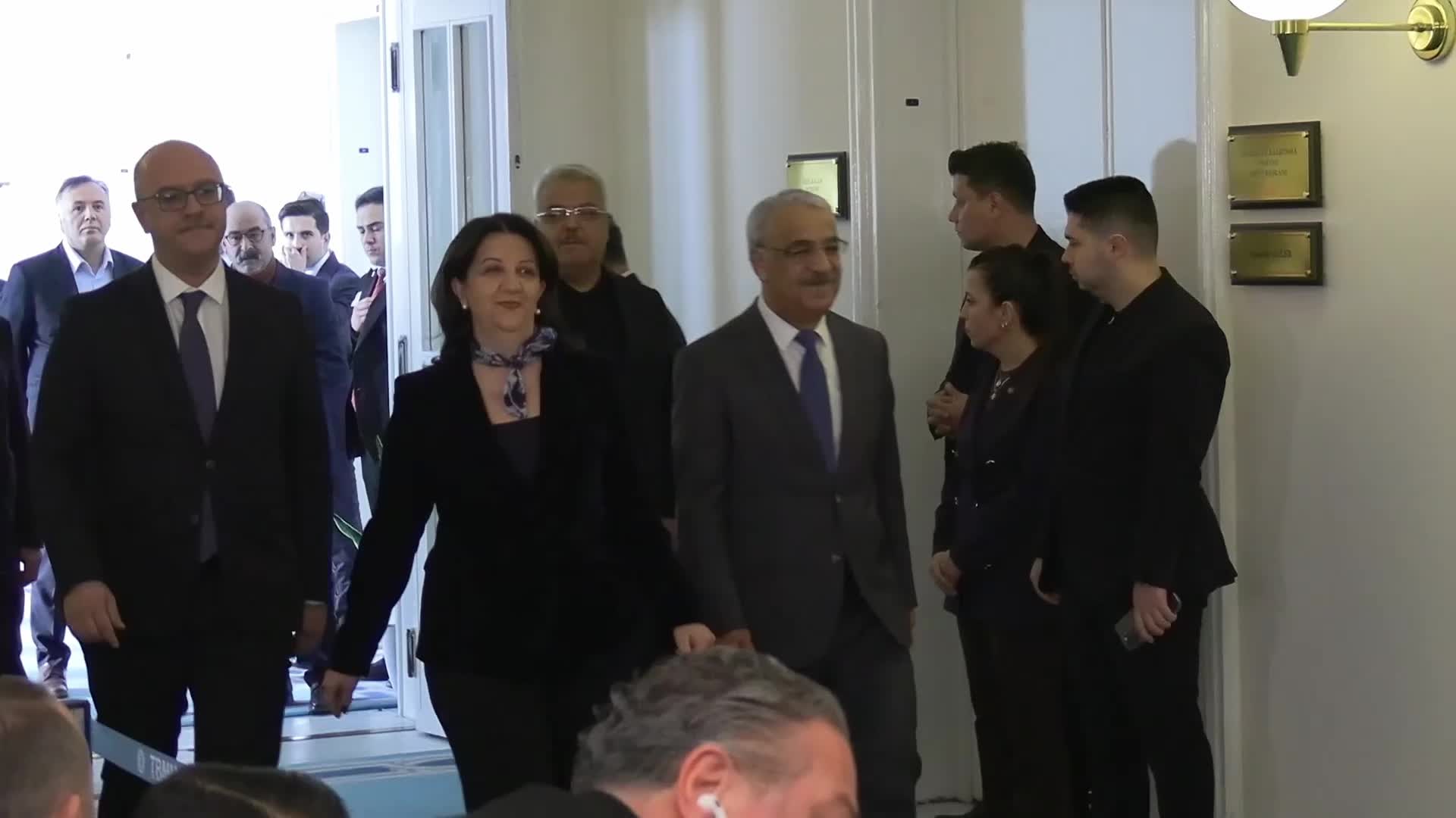 DEM Parti İmralı Heyeti üyeleri Van Milletvekili ve TBMM Başkanvekili Pervin Buldan, Şanlıurfa Milletvekili Mithat Sancar ve Asrın Hukuk Bürosu avukatı Faik Özgür Erol, AK Parti grubunu TBMM’de ziyaret etti. Ziyarette AK Parti Grup Başkanı Abdullah Güler, AK Parti Sözcüsü Ömer Çelik ve AK Parti Genel Başkan Vekili Efkan Ala yer aldı. Bir saat 35 dakika süren görüşmenin ardından görüşmeye ilişkin basın açıklaması yapıldı.