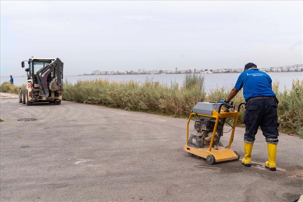 İzmir Büyükşehir Belediye Başkanı Dr. Cemil Tugay’ın 180 günlük görev süresini kapsayan “Hızlı Eylem Planı” içinde yer alan deniz taşkınlarıyla mücadele kapsamında Karşıyaka’daki çalışmalar da tamamlandı. Fen İşleri ekipleri ilk olarak Mavişehir Peynicioğlu Deresi ve çevresinde taşkınları önlemek için kademe kademe bordür taşla önlem aldı. Dere çevresi ve deniz kenarındaki bisiklet yolu güzergahı boyunca set çekildi. Bostanlı ve Karşıyaka Vapur iskeleleri arasında yer alan Karşıyaka Yelken Kulübü çevresindeki alanda su taşkınlarının önüne geçmek için 1 metre 20 santimetre yüksekliğinde beton duvar inşa edildi. Ayrıca bölgede içinde basketbol sahasının, oturma alanlarının yer aldığı sosyal yaşam alanı oluşturdu.