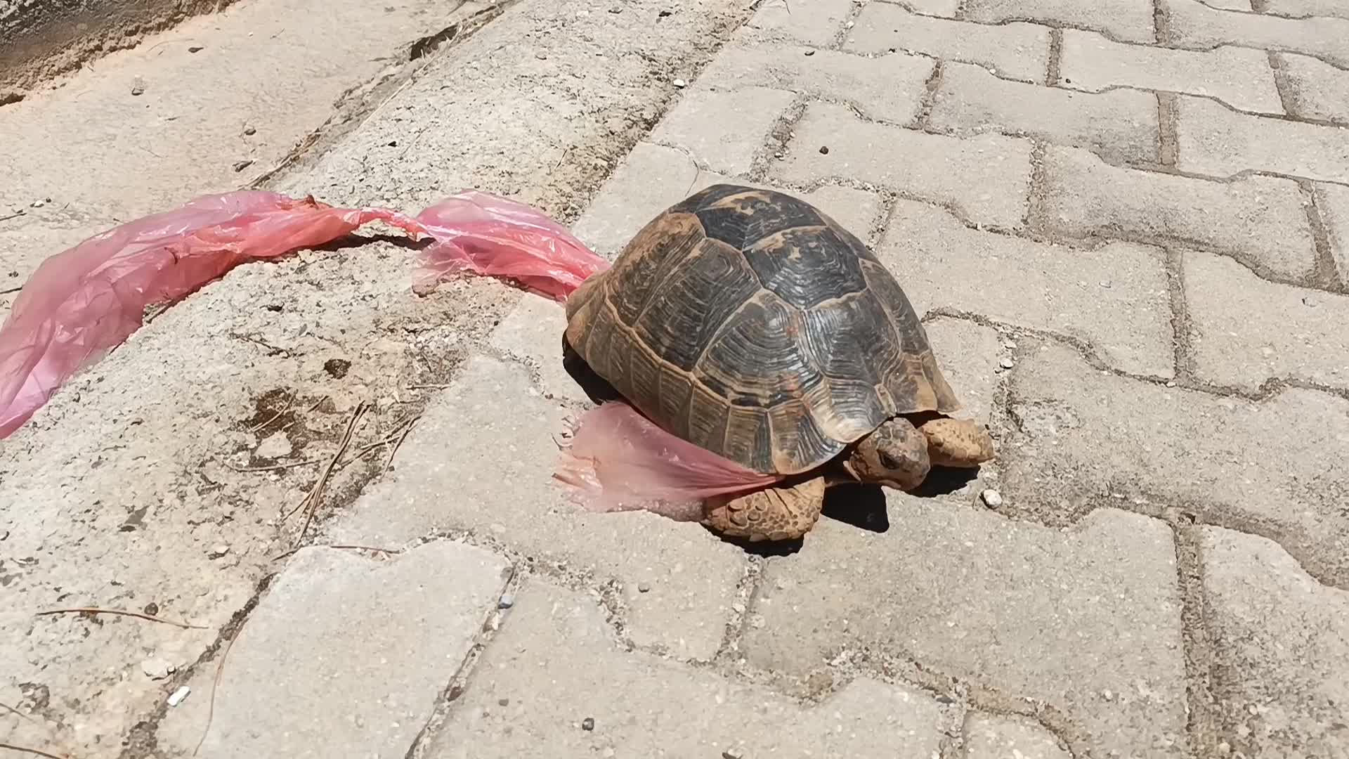 (AYDIN) – Aydın’ın Karacasu ilçesinde ayaklarına ve boynuna naylon poşet dolanan kaplumbağanın yaşadığı zorluk, çevreye atılan çöplerin doğadaki canlılar için ne denli tehlikeli olduğunu bir kez daha gözler önüne serdi. Yayla yolu üzerinde yürümeye çalışan kaplumbağayı fark eden bir gazeteci, hayvanı naylondan kurtararak doğal ortamına geri bıraktı.