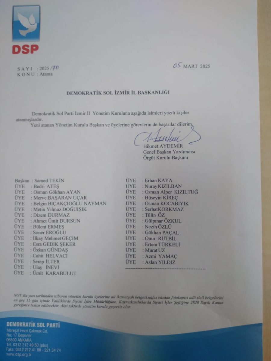 DSP İzmir İl Başkanlığı görevine atanmasıyla birlikte, Samed Tekin’in kentte nasıl bir siyasi yol haritası çizeceği merakla bekleniyor.