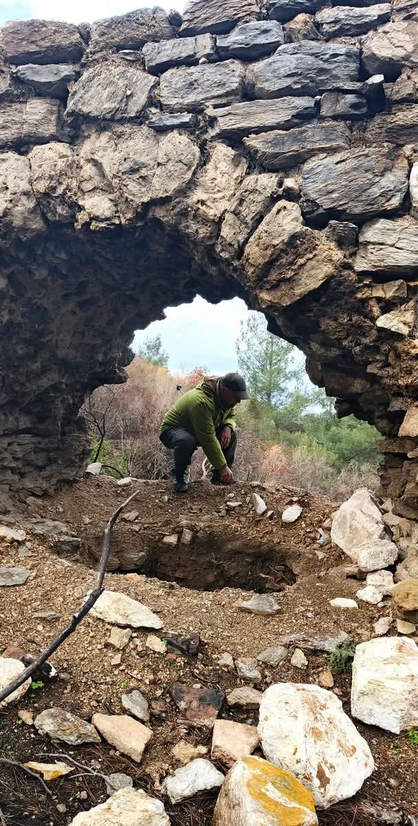 Geçtiğimiz Yaz çıkan orman yangınları sonrası ağaçlar ve makilikler küle dönüşünce bitki altında kalan su yoluna ait bazı yapılar meydana çıktı.