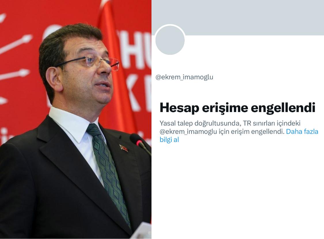İmamoğlu’nun X hesabına erişim engeli getirildi. İmamoğlu’nun profiline girildiğinde “Yasal talep doğrultusunda, TR sınırları içindeki @ekrem_imamoglu için erişim engellendi” ifadeleri yer alıyor.