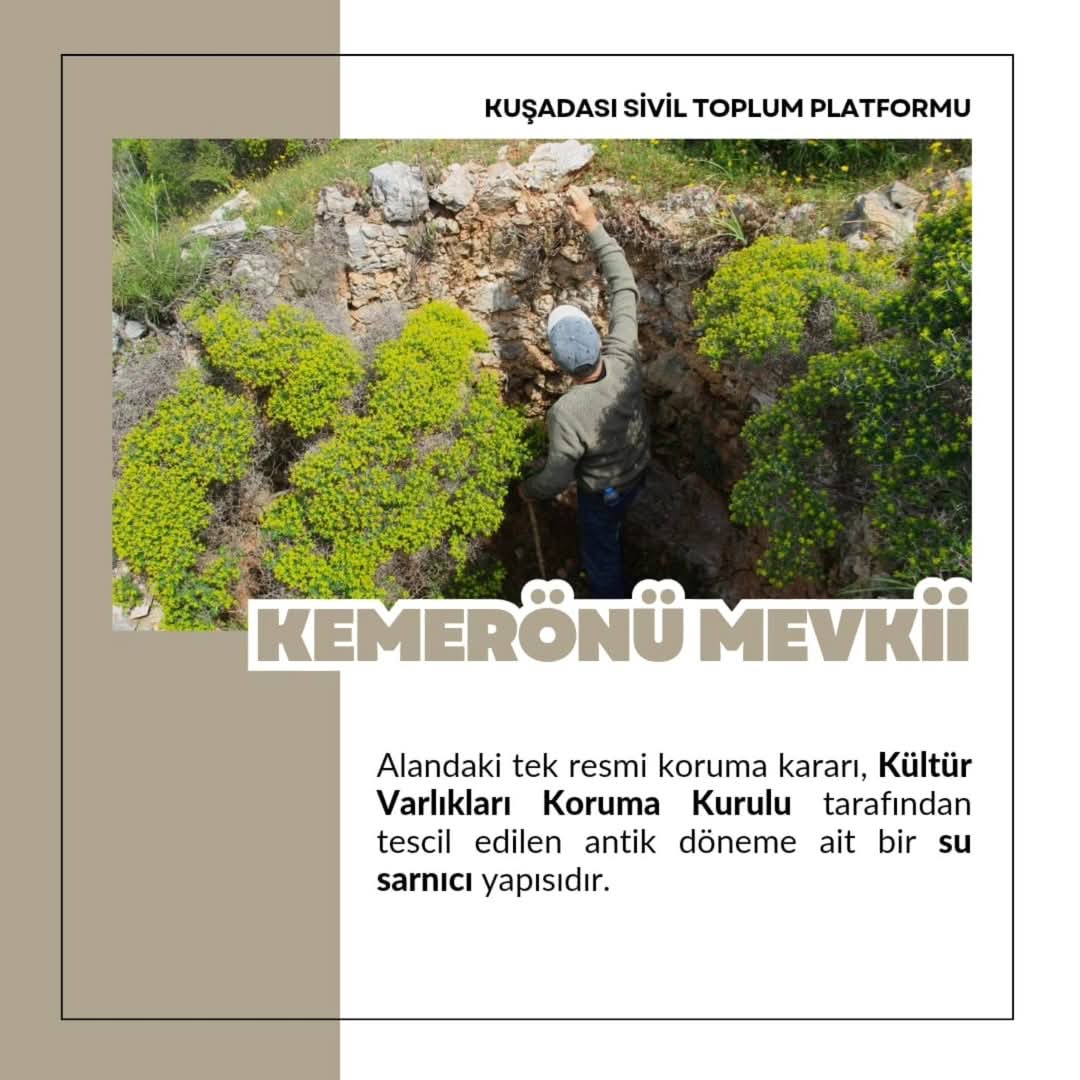 Yıllardır çevrecilerin ve sivil toplum örgütlerinin verdiği mücadeleye rağmen, Kemerönü’nü korumak için hiçbir adım atılmadı. Aksine, doğanın sesini bastırmak için yeni projeler hızla devreye sokuldu. Son olarak Güçlü Aydın Kooperatifleri’ne verilen ruhsatla 13 katlı bir yapı dikilecek. Sözde otel ruhsatı alan proje, turistik tesis maskesi altında rezidans konut olarak pazarlanıyor. Kuşadası’nın yoğunluğunu kat be kat artıracak bu projenin ne kente ne doğaya ne de halka bir faydasının olmayacağı ortada.