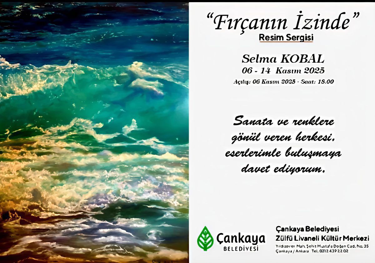 Çankaya Belediyesi, yeni bir sanat etkinliğine ev sahipliği yapıyor. Ressam Selma Kobal’ın “Fırçanın İzinde” adlı resim sergisi, 06 – 14 Kasım 2025 tarihleri arasında Zülfü Livaneli Kültür Merkezi’nde sanatseverlerle buluşacak.