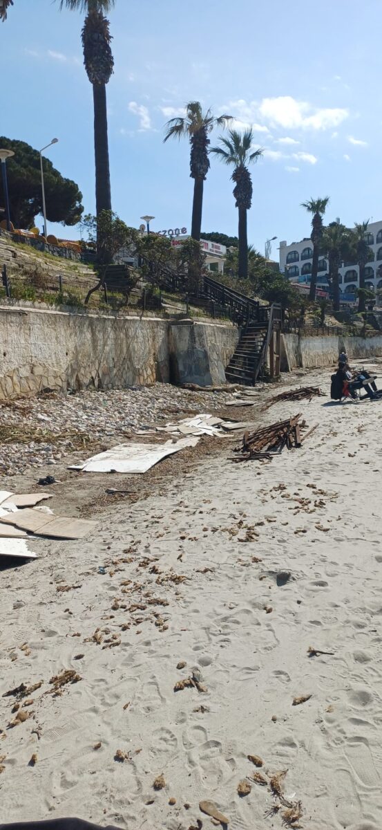 Rahmi Dilligil Haberi/Kuşadası – Önce sahilin karakterini oluşturan o sağlam taş merdivenler kaldırıldı, yerlerine ahşap yapılar yerleştirildi. Daha ilk sezonlardan çürüyen, kırılan bu merdivenler her yıl sözde onarıldı; fakat sonuç değişmedi. Her yaz sezonunda düşen insanlar, yaralanmalar ve aynı döngü: ihmal, geçici tamirat ve yeniden çöküş.