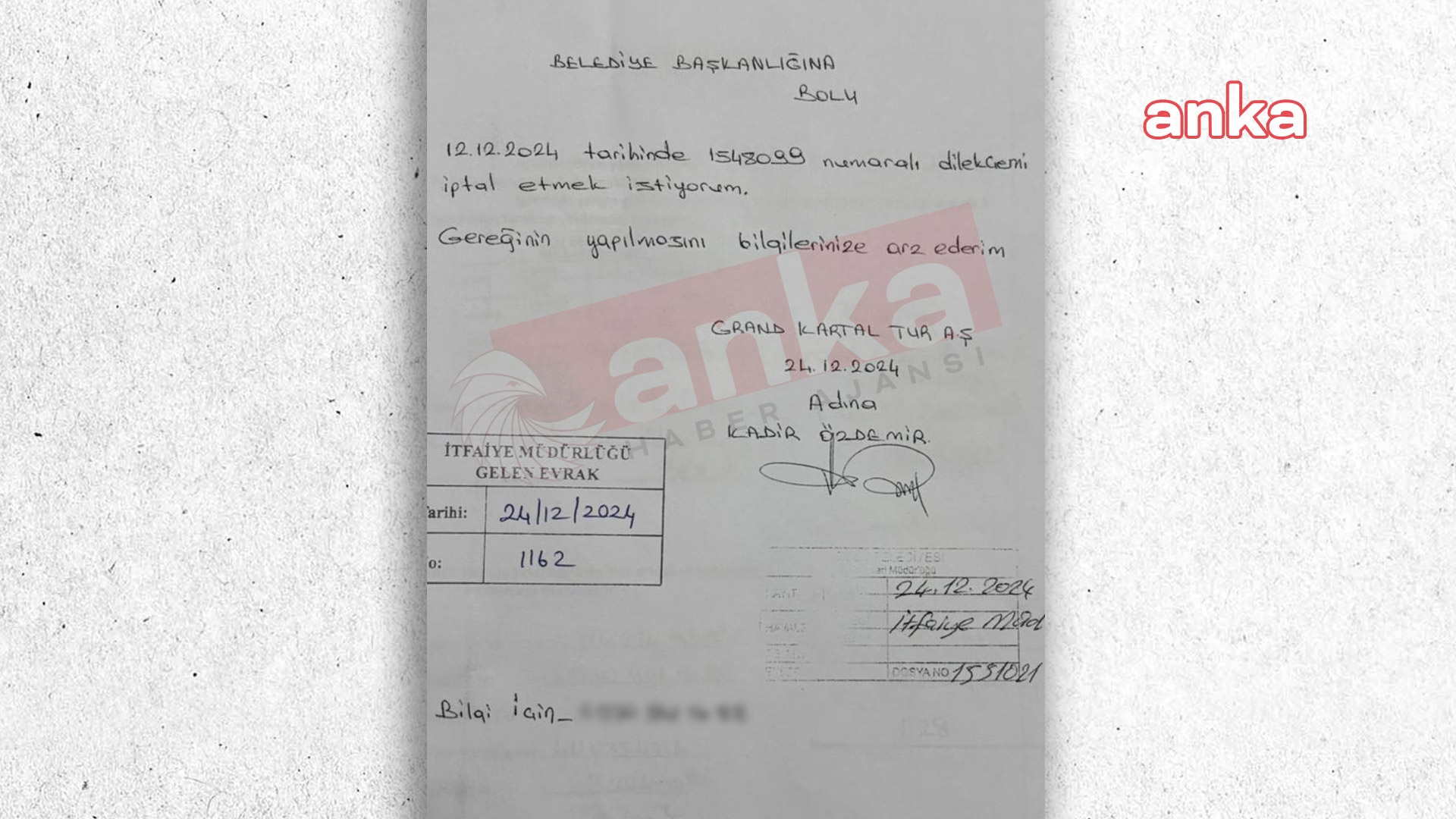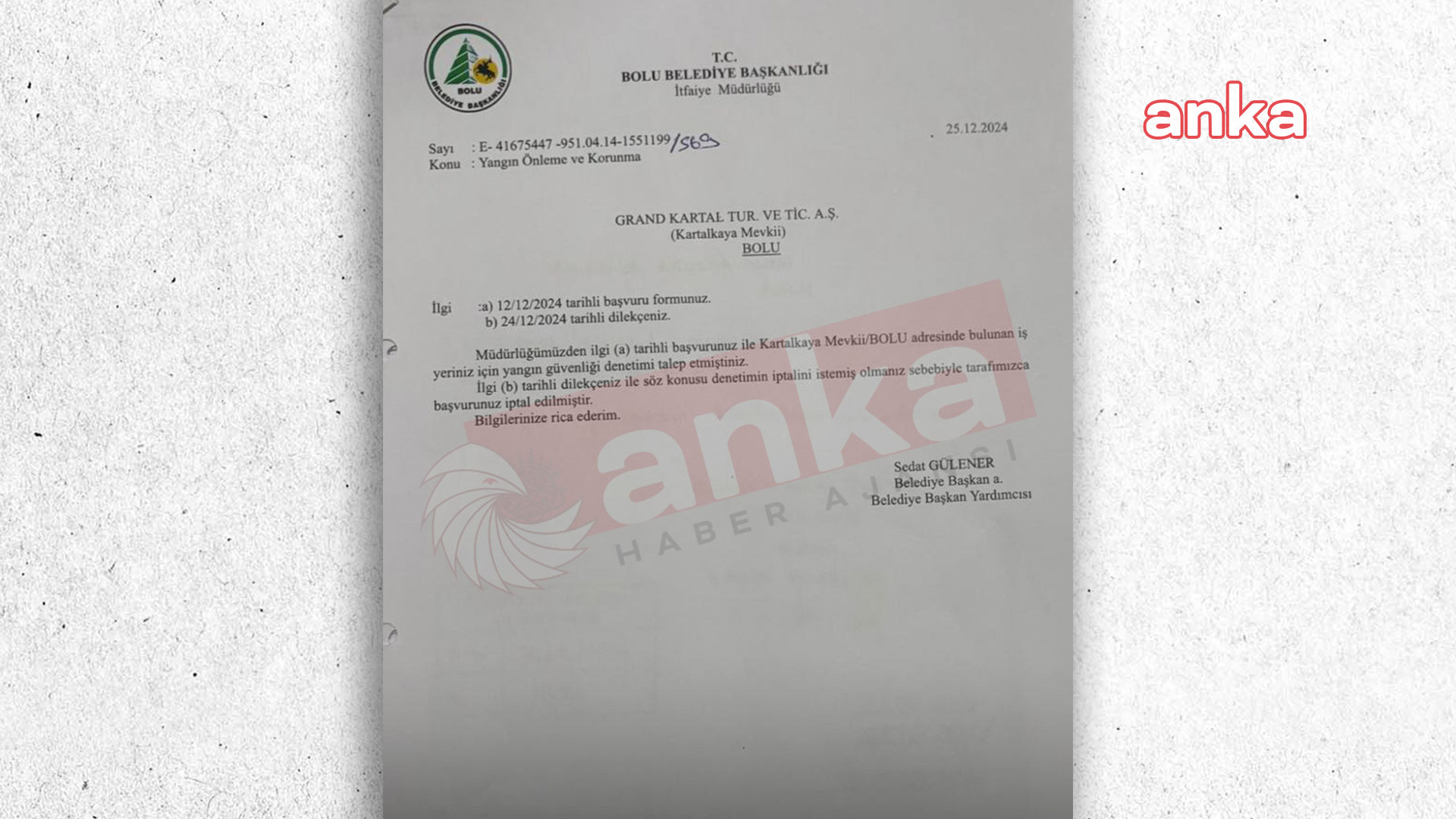 Belediye tarafından hazırlanan rapor sonrasında 24 Aralık 2024 tarihinde otel yetkilileri tarafından belediyeye dilekçe yazılarak ilgili raporun iptal edilmesi talebinde bulunulduğu da ortaya çıktı.