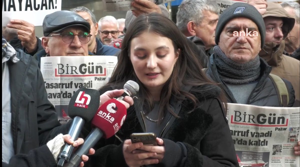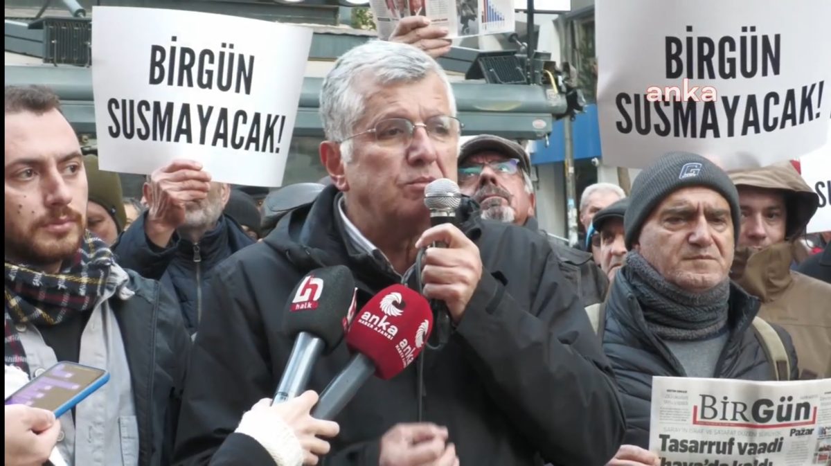 “Tıpkı Ergenekon ve Balyoz dönemlerinde olduğu gibi yeni bir ‘dokunan yanar’ döneminin içindeyiz. Bugün yapılmak istenen de hiçbir toplumsal kesimden yaşananlara karşı tek bir sesin çıkmamasıdır. Gözaltılarla, operasyonlarla, tutuklamalarla yoksulluğa mahkûm edilen halkın derdinin görünmez kılınması amaçlanmaktadır. Bu konular konuşulmasın istenmektedir. İktidarın RTÜK Komiseri Ebubekir Şahin’in ‘Türkiye’de olumlu olaylar yokmuş gibi algı yaratılıyor. Sadece olumsuz haberler yapılıyor’ dediği gün arkadaşlarımızın gözaltına alınması asla tesadüf değildir. İktidar dört koldan istemediği haberleri, gerçekleri yazan gazetecileri ve halkı cezalandırıyor. Ancak ne yaparlarsa yapsınlar tüm bunlar; sokaktaki yurttaşın ne istediğini göremeyen, halkın sesine kulağını kapatmış rejimin Saray’dan yaptığı hesaplar tutmayacak. Bugün burada bu hesabın çarşıya uymayacağını haykırıyoruz. Biliyoruz ki bu karanlık, halkın birleşik mücadelesiyle elbet son bulacak. Çünkü bu rejime karşı duran, gericiliğe, piyasacılığa ve memleketin tek adama teslim edilmesine karşı yüz binlerce, milyonlarca yurttaş var. Bir kez daha söylüyoruz, gün be gün soruşturmalarla, para cezalarıyla, çeşitli baskı aparatlarıyla hedef aldıkları Birgün gerçekleri yazmaya devam edecek. Birgün susmaz, susturamazsınız.”