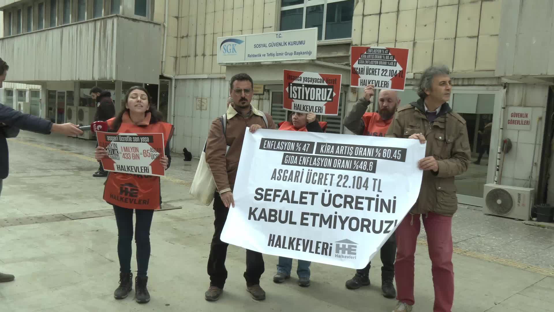 2025 yılı için uygulanacak asgari ücretin açıklanması tepkileri de beraberinde getirdi. İzmir’de Halkevleri üyeleri, İzmir İl Sosyal Güvenlik Kurumu Rehberlik ve Teftiş İzmir Grup Başkanlığı önünde toplanarak açıklanan asgari ücreti protesto etti.