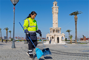 İzmir Büyükşehir Belediyesi’nin kadın istihdamını destekleyen politikaları, kadınların iş hayatına kazandırılmasına katkı sunarak topluma örnek oluyor. Belediyenin kritik birimlerinin yanı sıra sokak temizliği, operatör, zabıta ve daha birçok alanda çalışan kadınlar, işini severek yürütüyor. Her alanda sözü olan kadınların emeği, kenti güzelleştiriyor. Kadın süpürgeciler de sabahın erken saatlerinde işbaşı yaparak, Büyükşehir Belediyesi’nin sorumluluk sahasındaki cadde, meydan ve bulvarları süpürüyor.