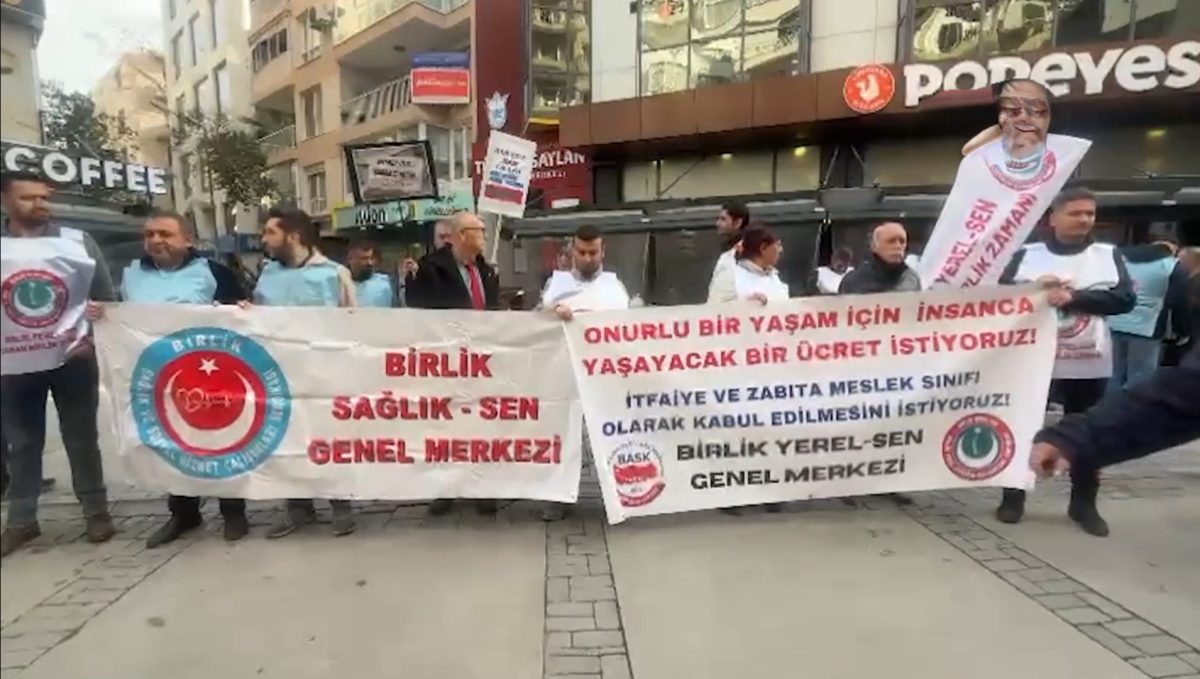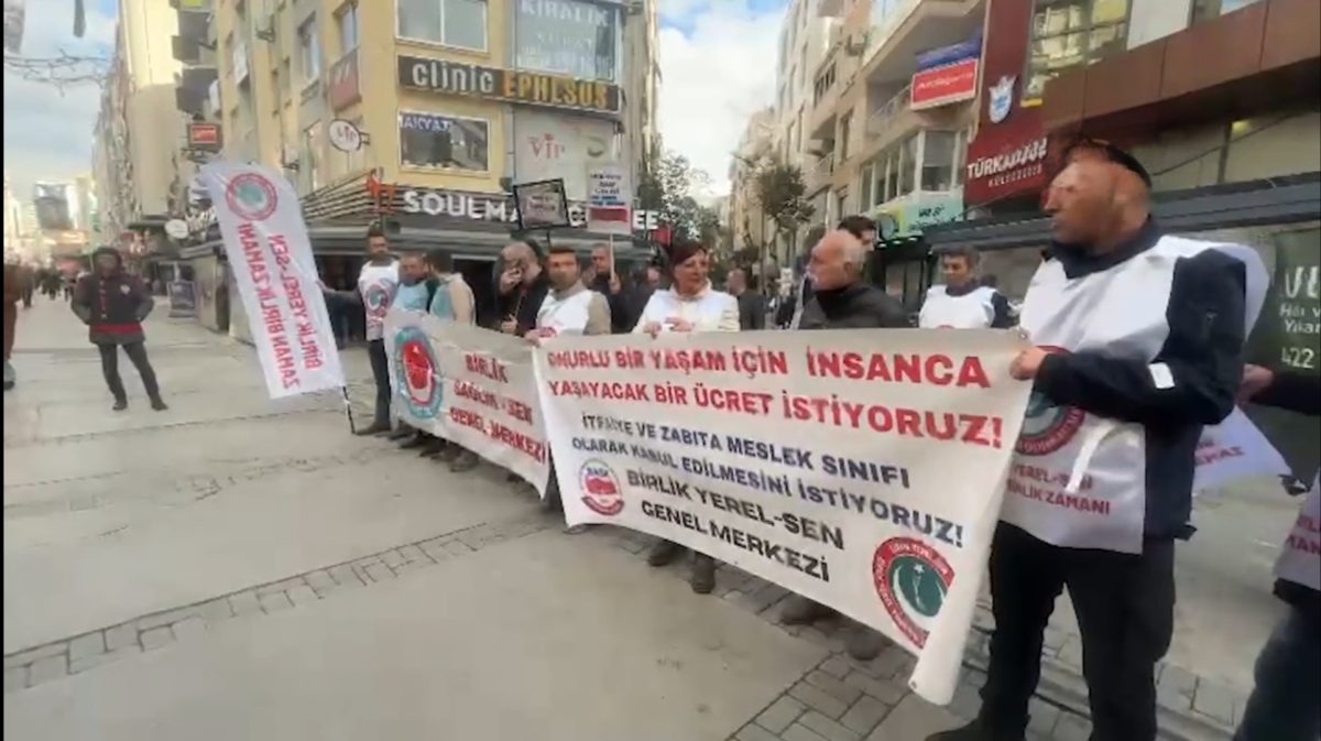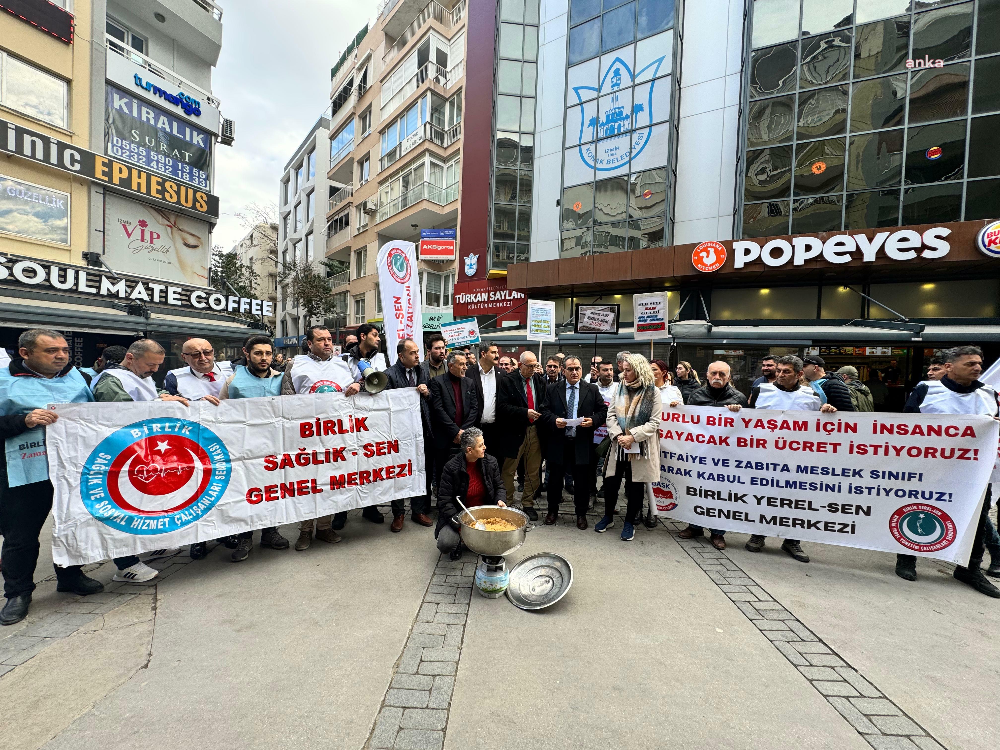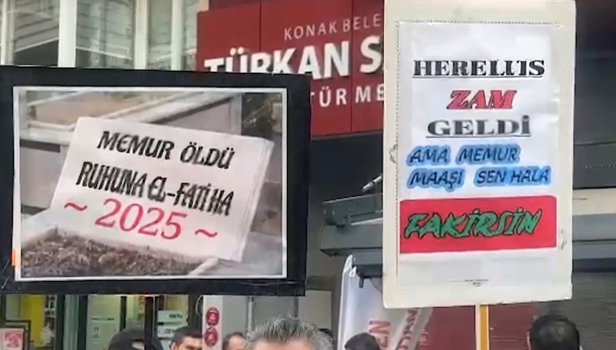 İzmir’de memurlar ve memur emeklileri maaş zamlarına tepki göstermek amacıyla Türkan Saylan Kültür Merkezi önünde bir araya geldi basın açıklaması düzenlendi. Açıklamada Onurlu bir yaşam için insanca yaşayacak bir ücret istiyoruz” pankartı açan memurlar “Memur yoksul olamaz”, “Memur uyuma enflasyona karşı çık” ve “Enflasyon farkı memur zammı değildir” sloganları attı.