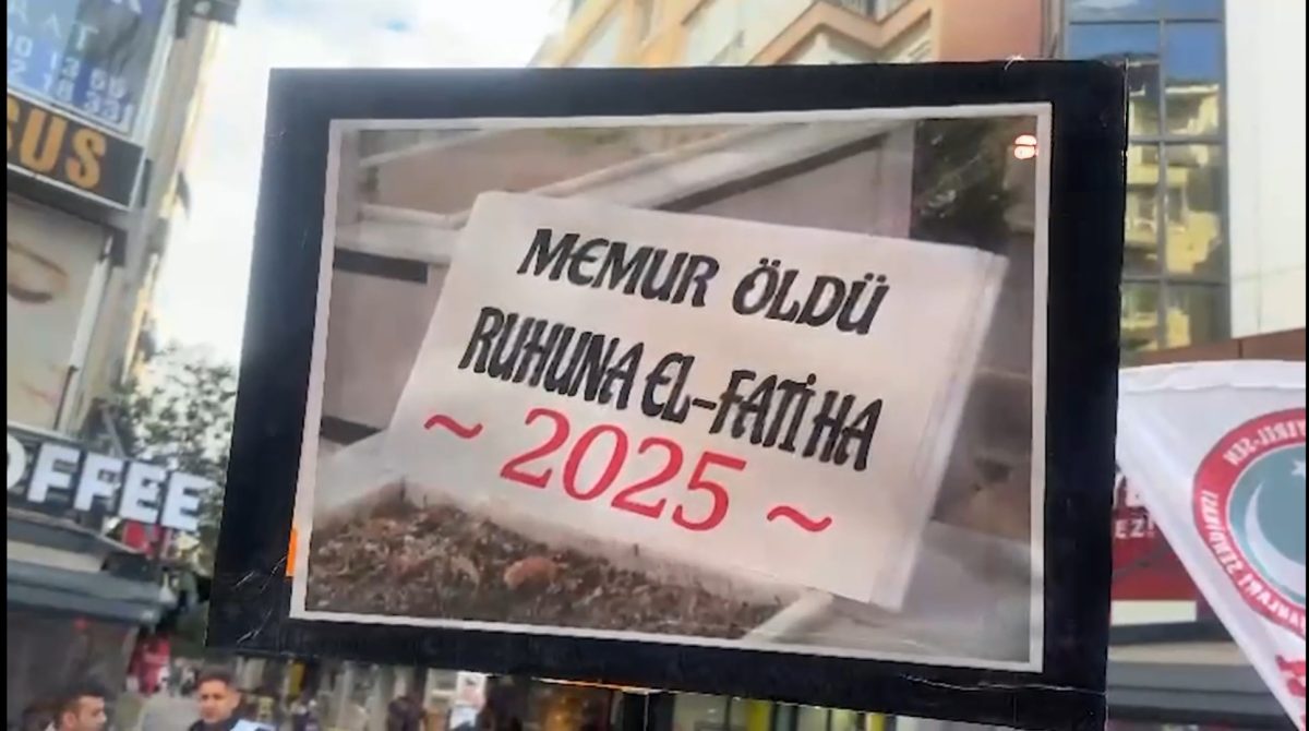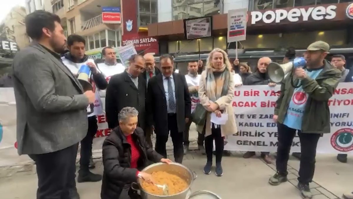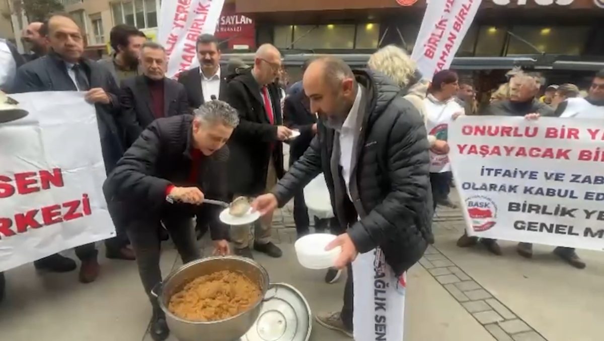 Basın açıklaması sonrasında kavurulan helva dağıtıldı ve “Helvası dağıtılan memurun ruhuna El-Fatiha denilerek” dua edildi.