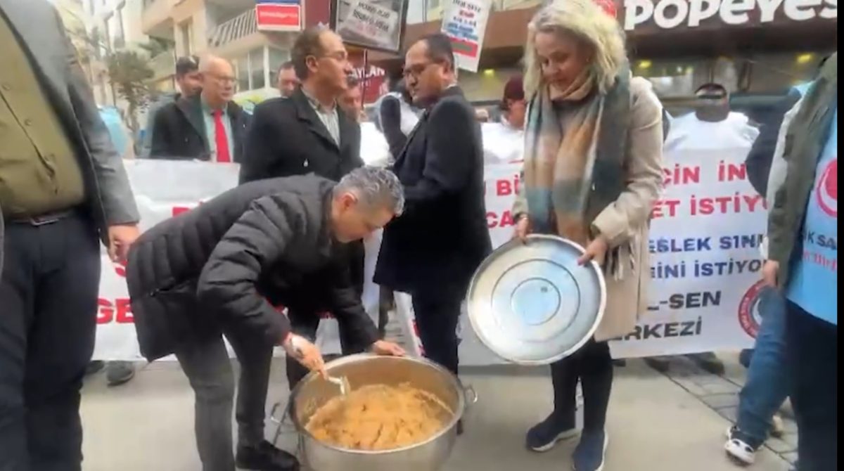 (İZMİR)– İzmir’de Birlik Sağlık Sen çatısı altında toplanan memurlar ve memur emeklileri maaş zamlarına helva kavurarak tepki gösterdi, “Memur öldü ruhuna El- Fatiha” sözleriyle de dua etti. ANKA’ya konuşan memur ve memur emeklileri “Maaşlarımız eridi, bu acımasızlık” dediler.
