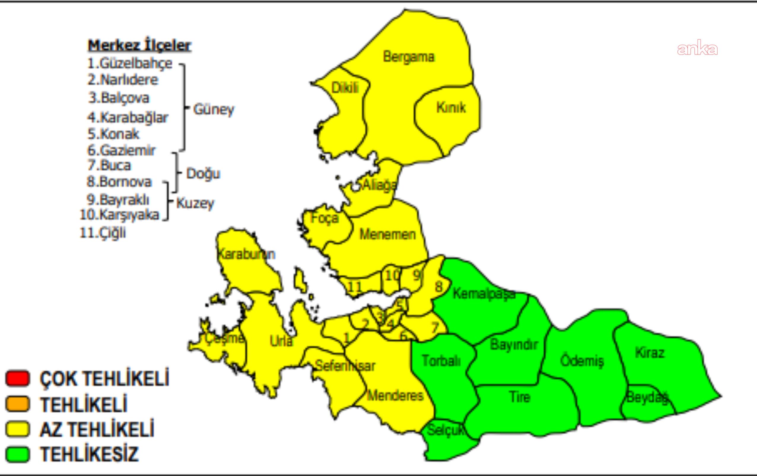 İzmir Bölge Tahmin ve Erken Uyarı Merkezi’nden yapılan uyarıya göre, kuvvetli rüzgar ve fırtınanın İzmir’in Güzelbahçe, Narlıdere, Balçova, Karabağlar, Konak, Gaziemir, Buca, Bornova, Bayraklı, Karşıyaka ve Çiğli ile kuzey ilçeleri Bergama, Kınık, Dikili, Aliağa, Foça ve Menemen’de; güneybatı kesimlerde ise Menderes, Seferihisar, Urla, Çeşme ve Karaburun’da etkili olması bekleniyor.