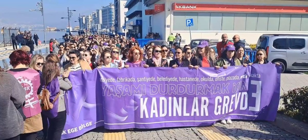 “8 Mart, kadın emeğinin sömürüsüne, iş yerlerindeki ayrımcılığa ve toplumsal cinsiyet eşitsizliğine karşı yürütülen mücadelenin simgesidir. Kadınlar, aynı işi yapmalarına rağmen erkeklerden daha düşük ücret alıyor, güvencesiz ve esnek çalışma koşullarına mahkûm ediliyor. Bizler, ‘Eşit işe eşit ücret!’ diyoruz ve bu mücadeleden asla vazgeçmeyeceğiz.”