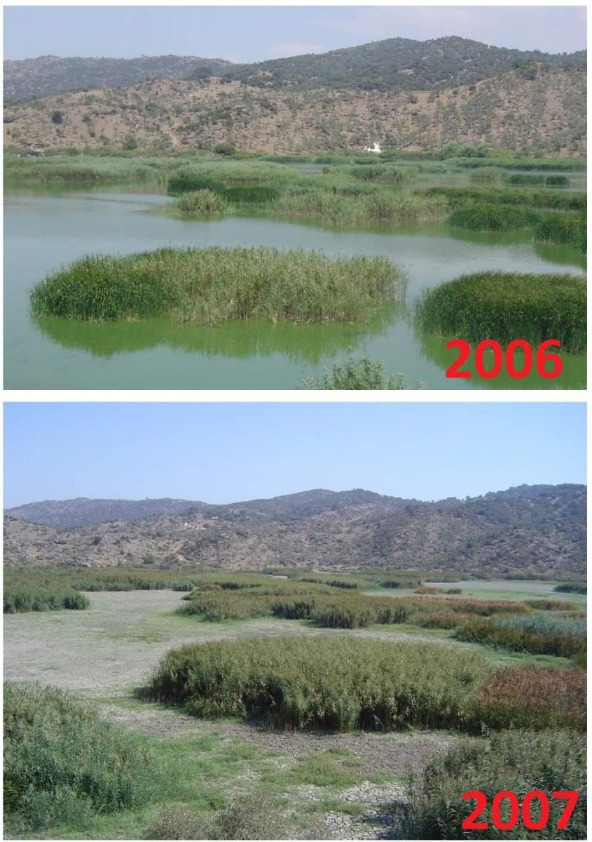 Gölde su seviyesinin düşmesi sonucu doğudan başlamak üzere kurumaların başladığı ve devam ettiği görülmektedir.