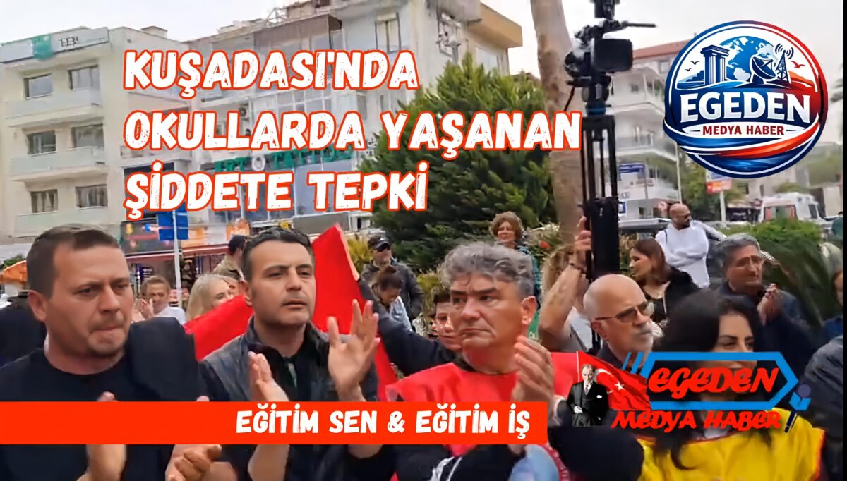 Kuşadası’nda Eğitim Sen ve Eğitim-İş öncülüğünde düzenlenen basın açıklamasında, okullarda artan şiddet olaylarına sert tepki gösterildi. Öğretmenler, veliler ve vatandaşlar “güvenli okul” talebiyle bir araya geldi.