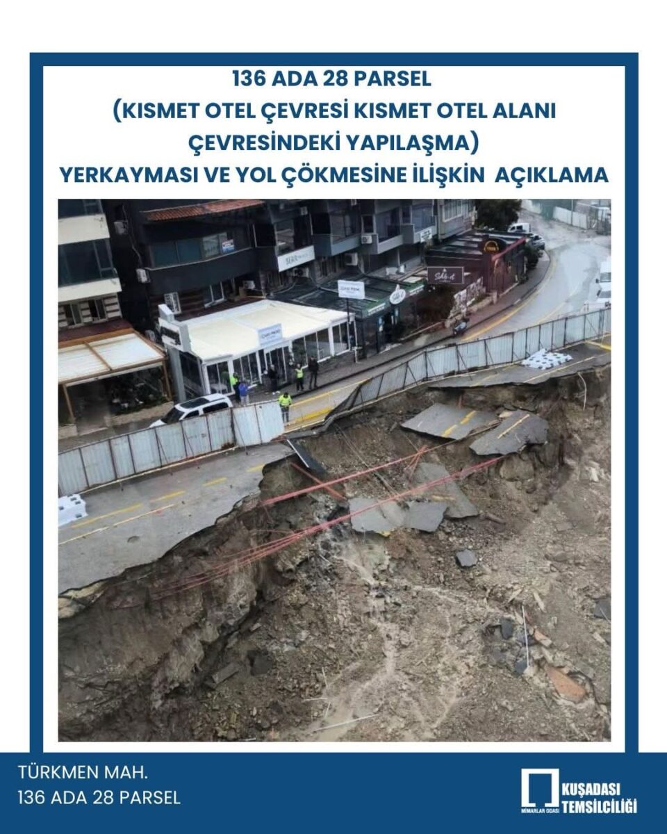 Aydın’ın Kuşadası ilçesinde, Kısmet Otel arazisinde Avcılar İnşaat tarafından yürütülen otel inşaatı çalışmaları sırasında meydana gelen toprak kayması ve yol çökmesi, ciddi bir kamu güvenliği krizine dönüştü. MMOB Kuşadası Temsilciliği’nin yerinde yaptığı teknik inceleme sonrası hazırlanan raporlar, yaşananların “doğal bir olay” değil; açık mühendislik hataları, denetim eksikliği ve kamusal sorumluluk ihlali olduğunu ortaya koydu. Meslek odası, inşaat faaliyetlerinin derhal durdurulmasını isterken, ilgili kamu kurumlarını da göreve çağırdı.
