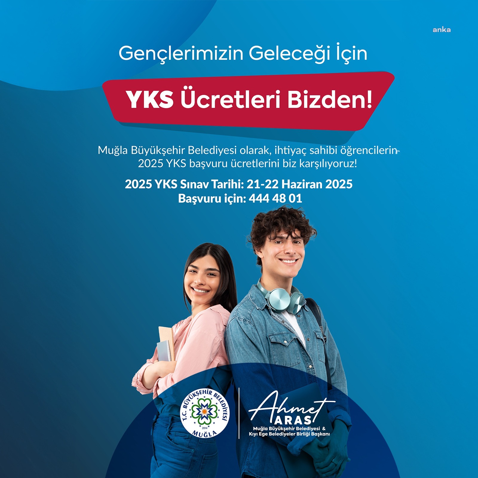 Muğla Büyükşehir Belediyesi, sosyal yardım alan ailelerin çocuklarının YKS başvuru ücretini karşılayacağını duyurdu. YKS desteğinden faydalanmak isteyen ailelerin Büyükşehir Belediyesi’nin çağrı merkezi numarası 444 48 01’i arayarak başvuru yapmaları gerekecek.