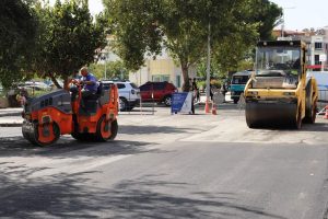 Türbe Mevkii Beşgöz Caddesi’nde sıcak asfalt için PMT serimi İZBETON ekiplerince tamamlanırken, Ödemiş Belediyesi Fen İşleri Müdürlüğü de bordür yenileme ve kaldırım düzenlemesi çalışmalarını sürdürüyor.
