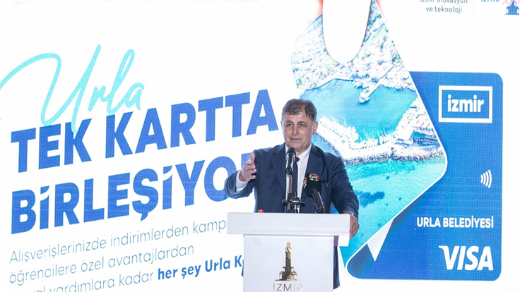 İzmir Büyükşehir Belediye Başkanı Dr. Cemil Tugay, İzmir Şehir Kart projesinin ilçelerdeki ilk adımı olan Urla Kart’ı tanıttı. İlçenin ekonomik ve sosyal dayanışma ağını genişleterek, yurttaşların hayatını birçok alanda kolaylaştıracak Urla Kart’ın, çok geniş bir alanda kullanılacağını belirten Başkan Tugay, “Dünyanın her tarafında kullanılabilir. Örneğin Urla Kart ile Almanya’da metroya binilebilecek” dedi.