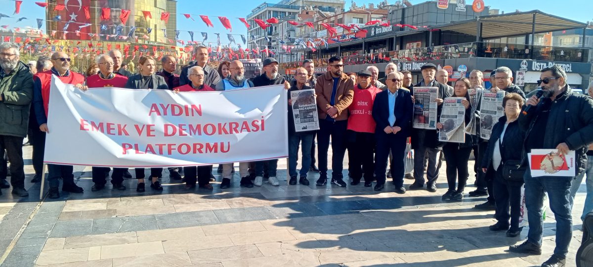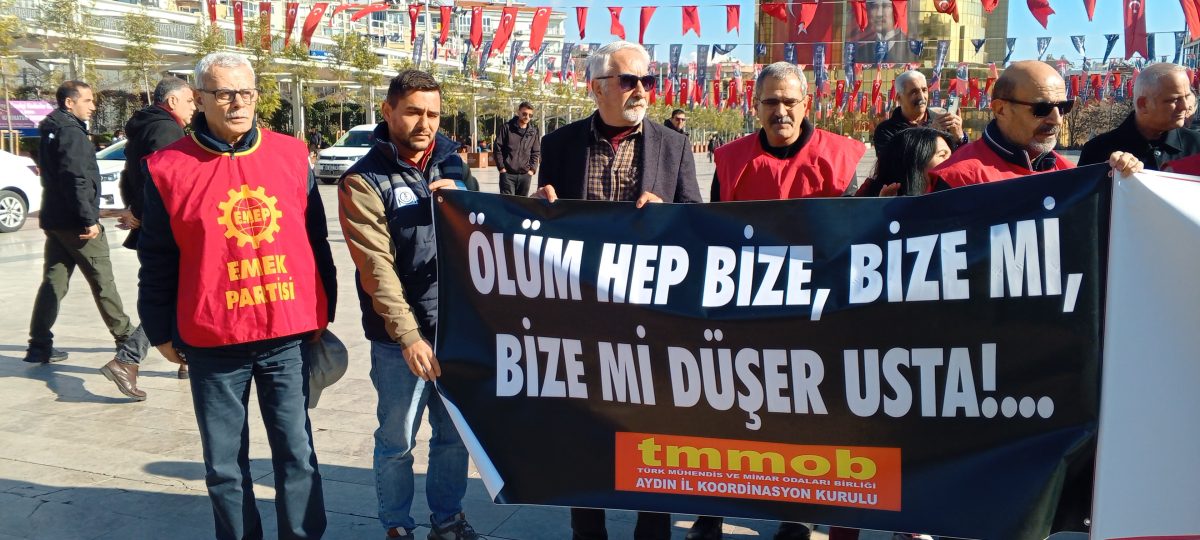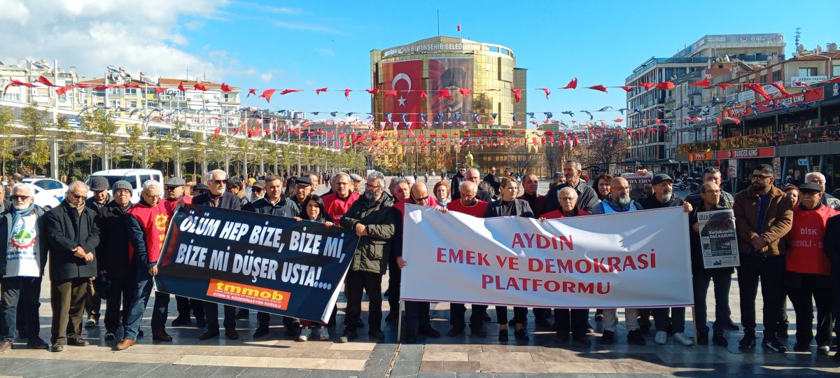 Basın açıklamasında, platform üyeleri, yaşamını yitirenlerin anısına yapılan bir dakikalık saygı duruşundan sonra yapılan basın açıklamasını, Aydın Emek ve Demokrasi Platformu adına TMMOB Aydın İl Temsilcisi Tunç Erlaçin yaptı.