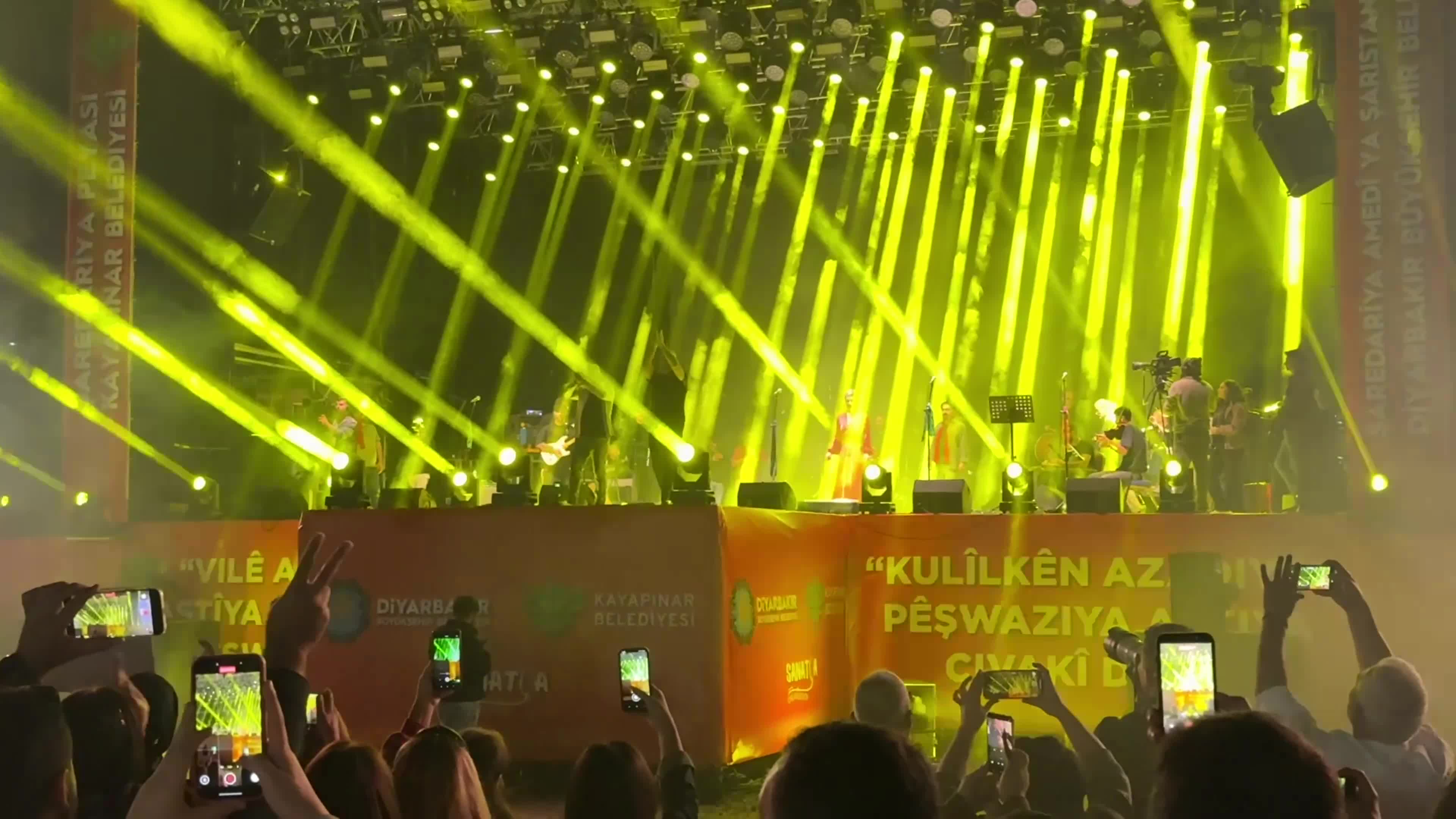 Yapılan konuşmaların ardından 32 yıl önce besteledikleri Kürtçe şarkıları seslendiren grup üyelerine, on binlerce vatandaş eşlik etti.
