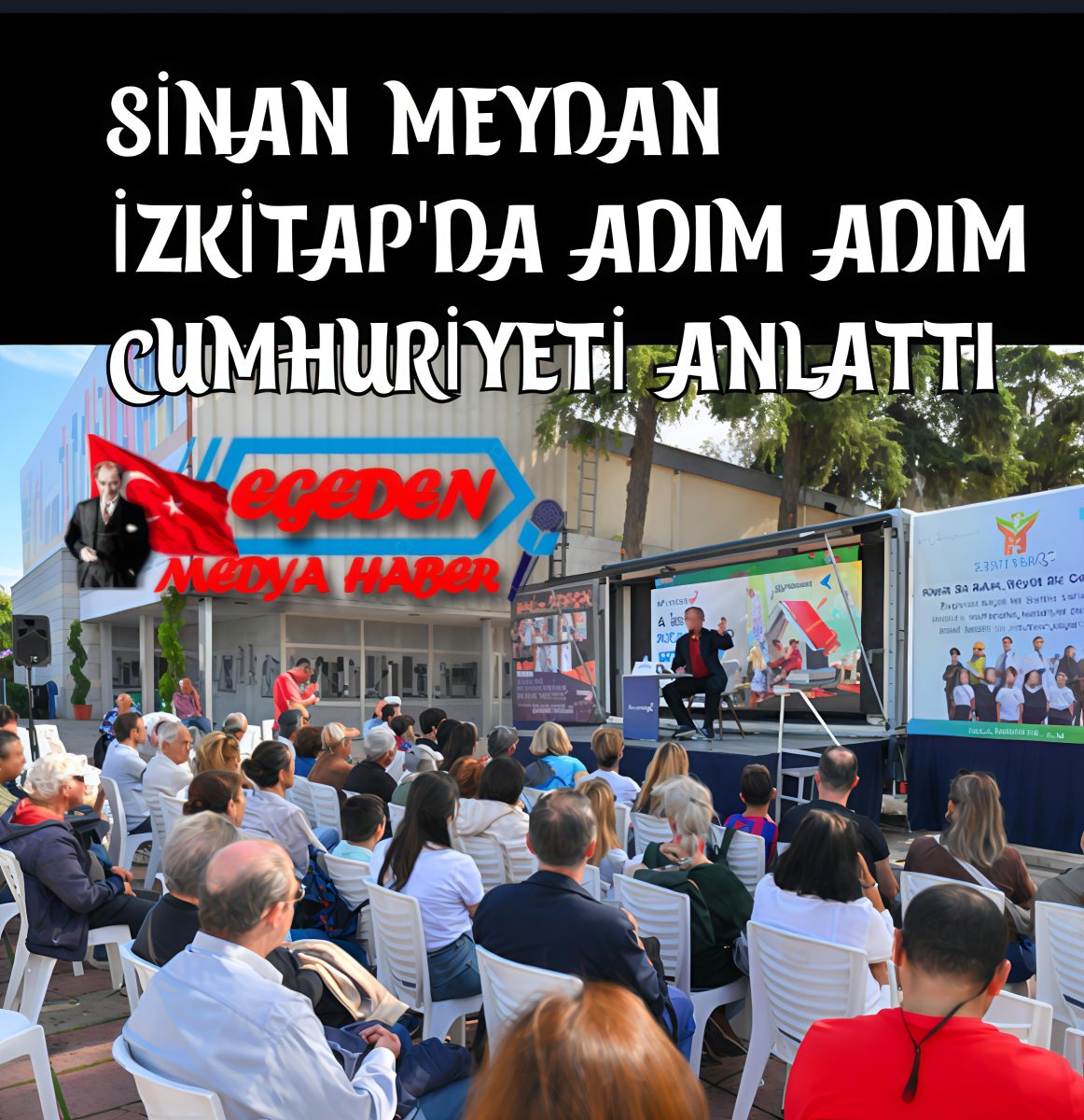 İzmir Büyükşehir Belediyesi’nin ev sahipliğinde, Kültürpark’ta düzenlenen İZKİTAP – 6. İzmir Kitap Fuarı kapsamında, tarihçi-yazar Sinan Meydan, “Adım Adım Cumhuriyet” başlıklı söyleşide okuyucularla buluştu. Meydan, “Türkiye’de demokrasiyi inşa etmenin yolu laik Cumhuriyetten geçer” dedi.