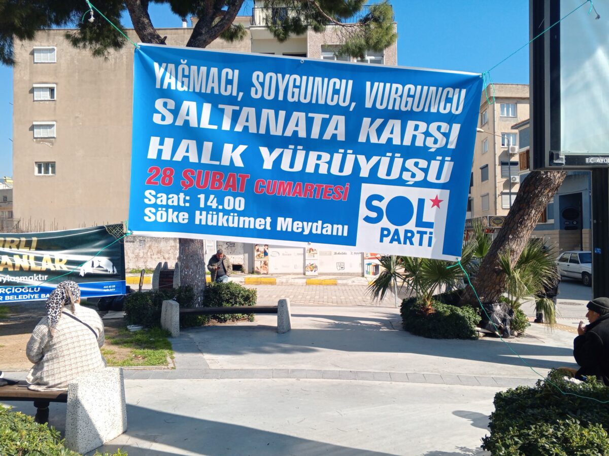 28 Şubat Cumartesi günü saat 14.00–16.00 arasında Sol Parti öncülüğünde düzenlenen “Yağmacı, Soyguncu, Vurguncu Saltanata Karşı Halk Yürüyüşü”, Söke merkezinde kitlesel katılımla gerçekleştirildi.
