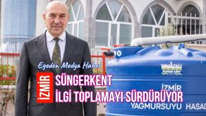 Sünger Kent İzmir projesiyle, yağmur suyu hasadına yönelik bir teşvik sistemi uygulanarak 5 bin binaya 5 bin yağmur suyu deposu dağıtımı ile İzmir’e 10 bin yağmur bahçesi kampanyası sürüyor. Projeyle İzmir’in 5 yıl içerisinde Sünger Kent olarak inşa edilmesi ve kentsel alanda yağmur suyu akışının yüzde 70 oranında azaltılması planlanıyor.