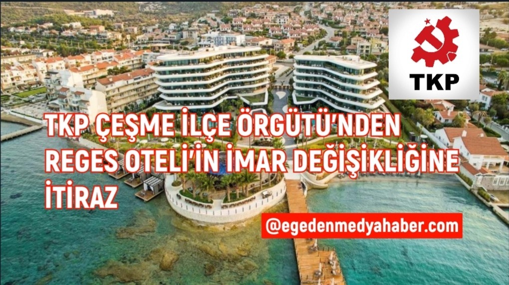 Türkiye Komünist Partisi (TKP) Çeşme İlçe Örgütü, imar planı değişikliğine karşı İzmir Büyükşehir Belediyesi’ne resmi itirazda bulundu. TKP Çeşme İlçe Örgütü açıklamasında, “Çeşme’de hazırlanan bu yeni rant tuzağıyla, yapmış oldukları inşaat ruhsat eklerine aykırı bağımsız bölümlerine yasal statü kazandıracaklar, tapu verecekler, kârlarına kâr katacaklar” ifadelerine yer verildi.
