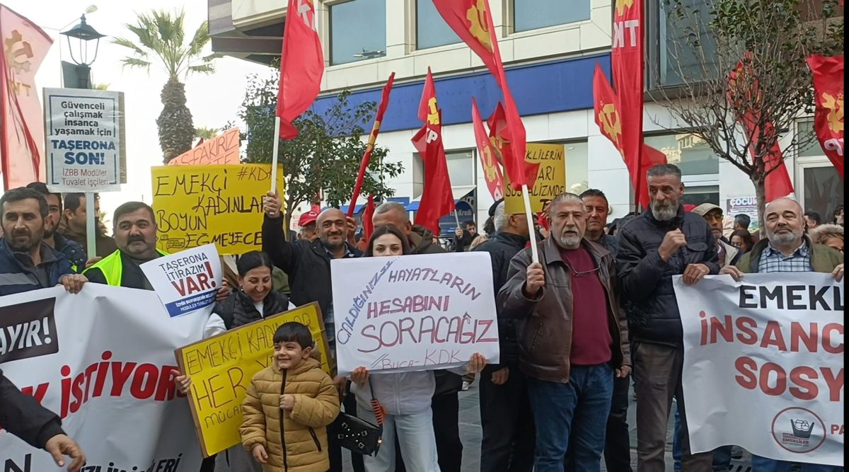 Karşıyaka metro istasyonu önünde bir araya gelen TKP’liler ve çevrede toplanan vatandaşlar, düdükler ve sloganlarla Karşıyaka vapur iskelesine kadar yürüdü. Coşkulu kalabalık, “Bu ülkenin zenginliği bir avuç insanın değil, halkın olmalı!” diyerek adalet ve eşitlik çağrısında bulundu.