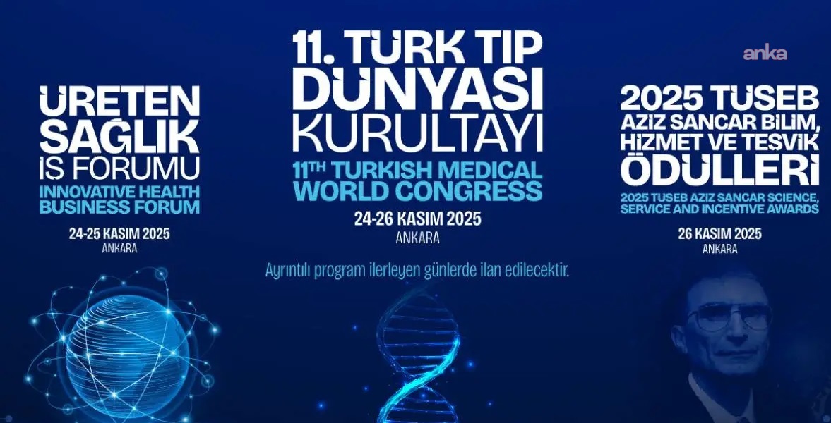 (ANKARA)– Cumhurbaşkanlığı bünyesinde Sağlık Bakanlığı ve TÜSEB tarafından düzenlenen 11. Türk Tıp Dünyası Kurultayı, 24–26 Kasım 2025 tarihlerinde Ankara’da gerçekleştirilecek. Etkinlikte, Nobel ödüllü Prof. Dr. Aziz Sancar, DSÖ Avrupa Bölge Direktörü Dr. Hans Kluge, 40 yabancı ve Türk bilim insanı, 20’ye yakın ülkenin sağlık bakanları ve yaklaşık 3 bin akademi, kamu ve sektör temsilcisi bir araya gelecek.