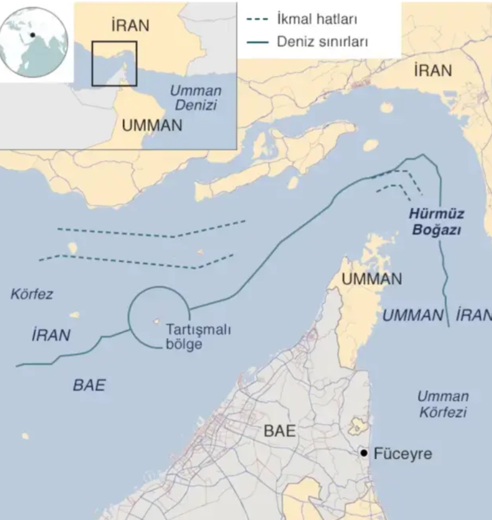 Hürmüz Boğazı İran ile Umman (Musandam Yarımadası) arasında yer alır ve Basra Körfezi’ni Umman Denizi’ne, oradan Hint Okyanusu’na bağlar.